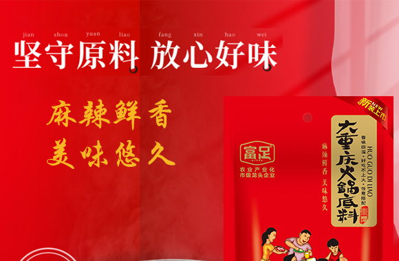公司主要經(jīng)營(yíng)“富足”“一鍋傾城”等品牌手工老火鍋底料系列;麻辣香鍋系列;雞、鴨、魚、蝦、牛、羊、狗系列調(diào)味料等30多個(gè)品種,產(chǎn)品銷往國(guó)內(nèi)各地各大商超、農(nóng)貿(mào)、餐飲平臺(tái),同時(shí)外銷東南亞部分地區(qū),得到國(guó)內(nèi)外廣大消費(fèi)者一致好評(píng)、深受國(guó)內(nèi)外廣大消費(fèi)者喜愛。
