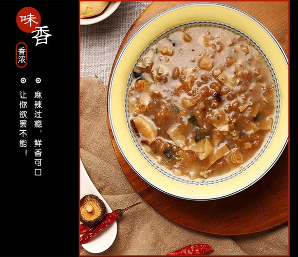 本品來自河南伊尹之鄉(xiāng)店集,是“尊生牌”胡辣湯,具有湯味濃郁、湯色靚麗、湯汁粘稠,香辣可口等特點,是陪伴家人在家吃早餐和送禮的方便胡辣湯。