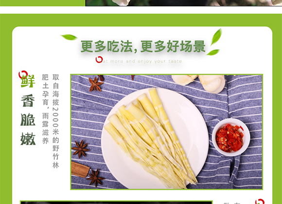 產(chǎn)品介紹:深山野竹筍,自然生長(zhǎng)非人工種植,品質(zhì)穩(wěn)定,無(wú)硫化工藝,無(wú)異味。