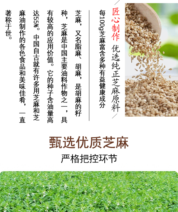 公司產(chǎn)品采用傳統(tǒng)石磨工藝精心加工,保留了芝麻醇厚香味、濃香持久,極大的保留了芝麻的營養(yǎng)成分。公司出品的“祖藝源”牌小磨香油氣味芳香,天然純正、色澤上好、香至瓶底、回味無窮!白嫠囋础迸浦ヂ獒u,精選優(yōu)質(zhì)芝麻,采用傳統(tǒng)石磨精制而成,口感細(xì)膩、香甜、純正。花生醬原料選自優(yōu)質(zhì)花生種植基地山東日照,粒大飽滿,香甜可口,油而不膩,卓而不凡的品質(zhì),深受廣大消費(fèi)者的厚愛。
