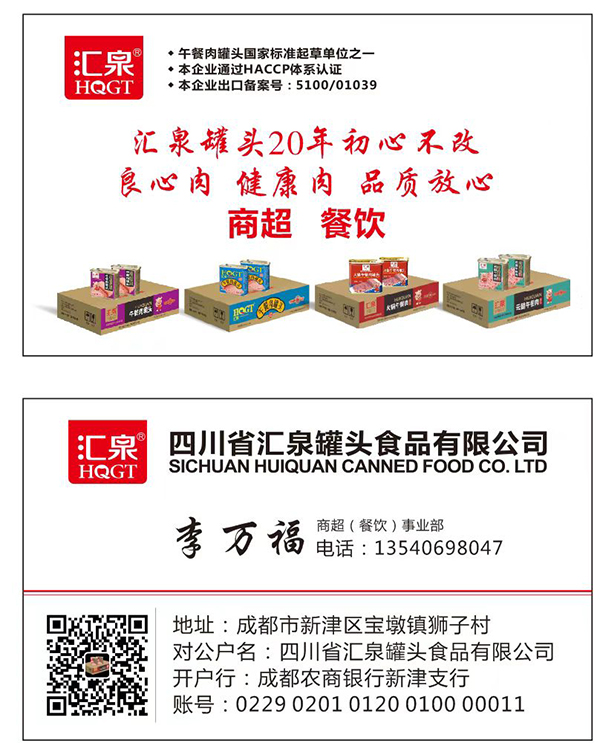 四川省匯泉罐頭食品有限公司興建于2003年,是一家從事各類罐頭食品加工銷售的企業(yè)。并獲ISO9001:2008管理體系和HACCP體系認(rèn)證。