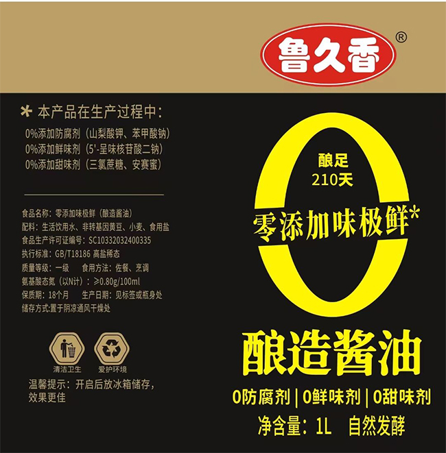 魯久香 味極鮮 釀足210天 1L 自然發(fā)酵